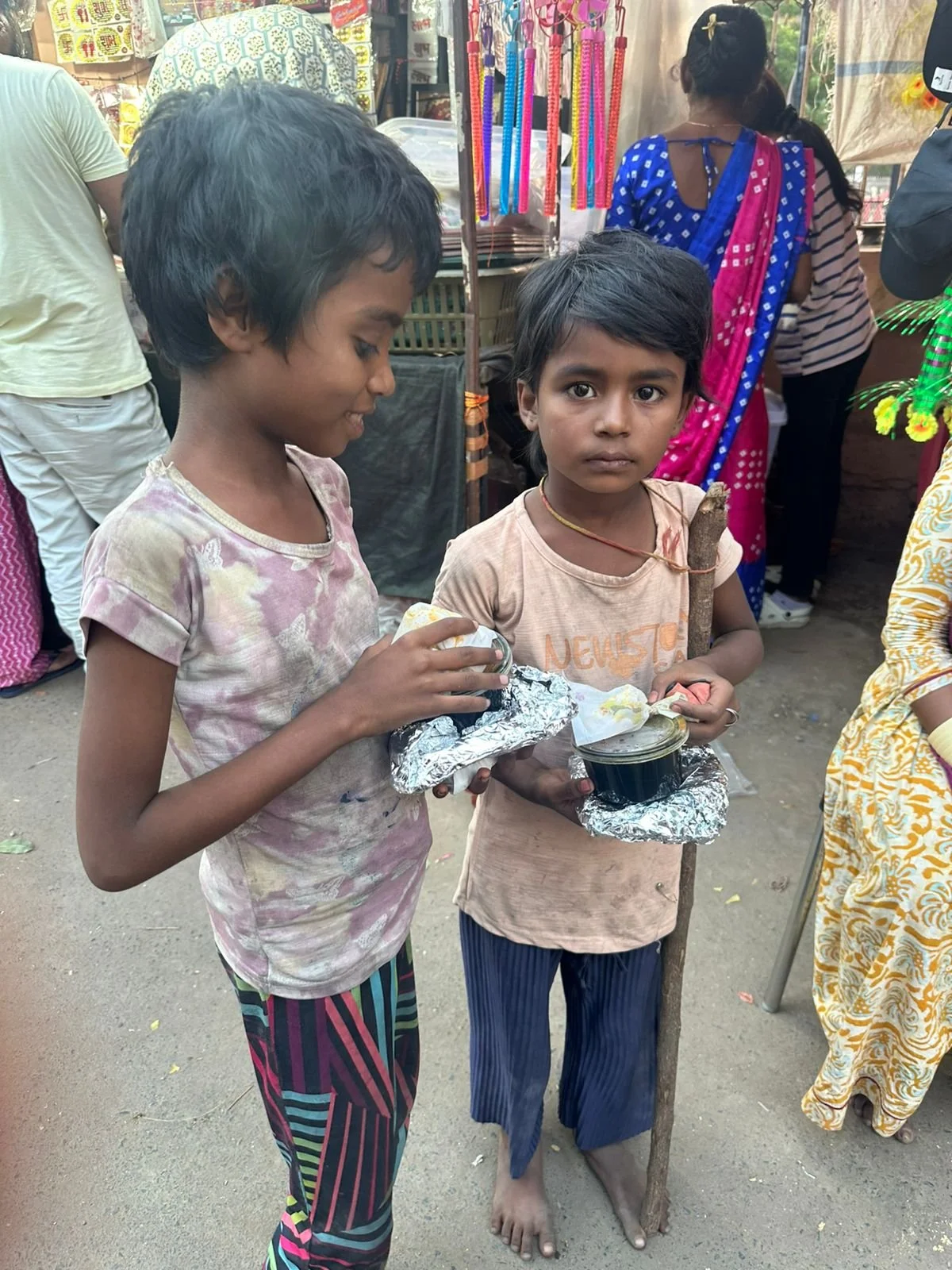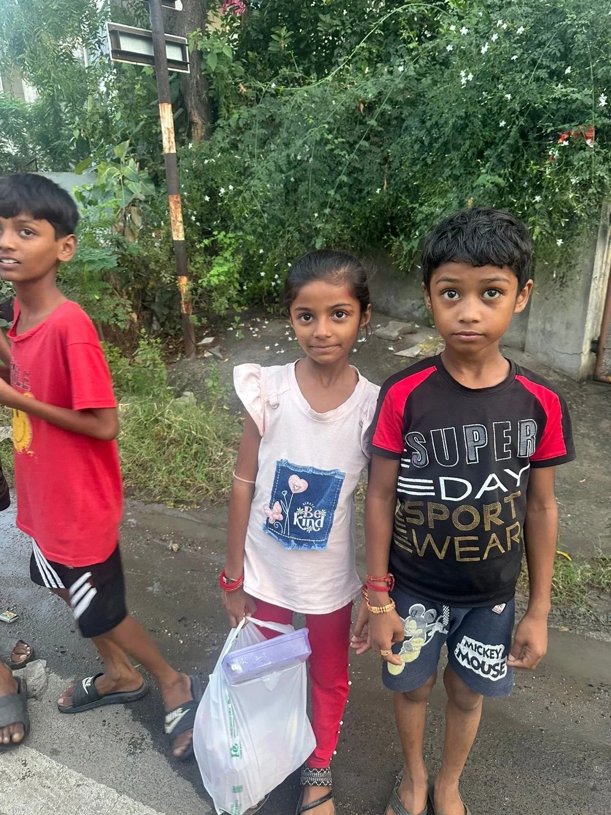 Children, holding their food packets with innocence and curiosity in their eyes — a gentle reminder that kindness, even in small acts, can make a big difference in someone’s day